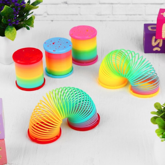 А у вас была такая? Теперь она стала ещё наряднее. Пружинка наполнит день вашего малыша новыми увлекательными и развивающими играми. Просто перекидывайте её из руки в руку или растягивайте, как гармошку: она настроит на творческий лад и успокоит нервы. В процессе игр с ней расскажите ребёнку о настоящей радуге, ведь они так похожи.