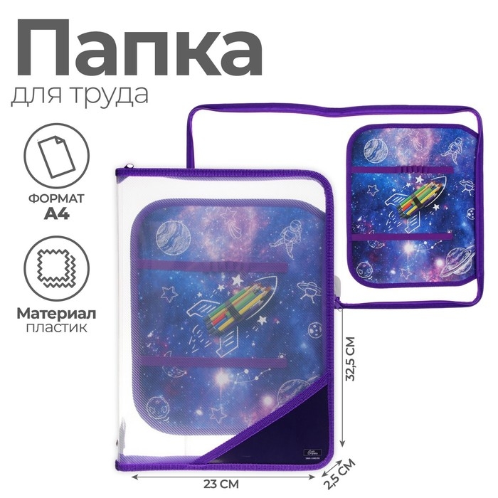 Папка для труда А4, 325 х 230 х 25 мм, молния вокруг, откидная планка, пластиковая, ПТР-1, Calligrata, "Ракета"