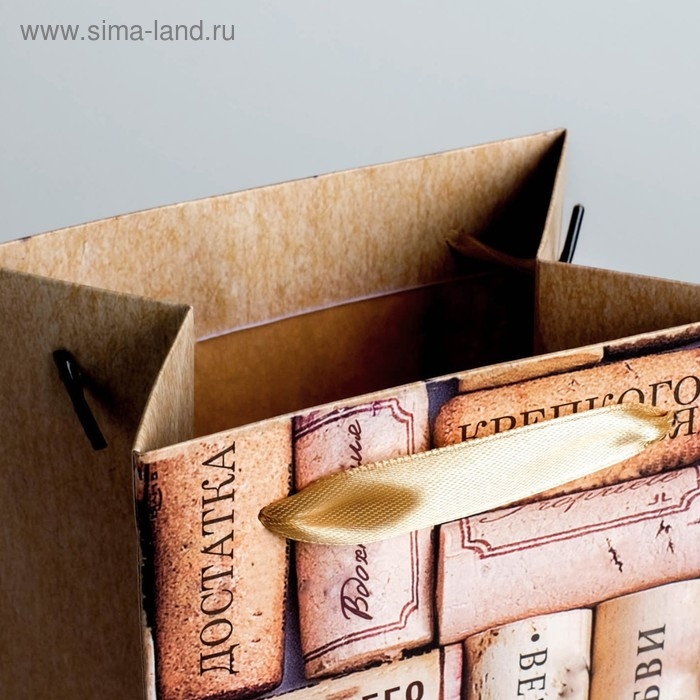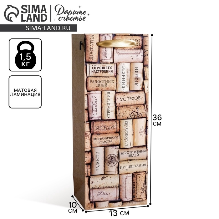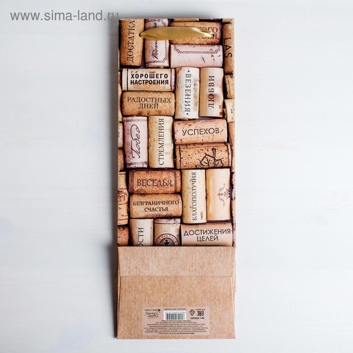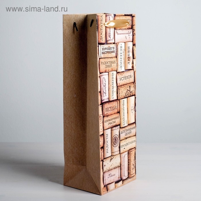 Пакет подарочный крафтовый упаковка под бутылку, «С пожеланиями!», 12 х 36 х 10 см