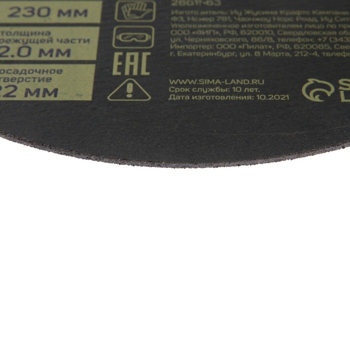 Круг отрезной по металлу ТУНДРА, армированный, 230 х 2.0 х 22 мм