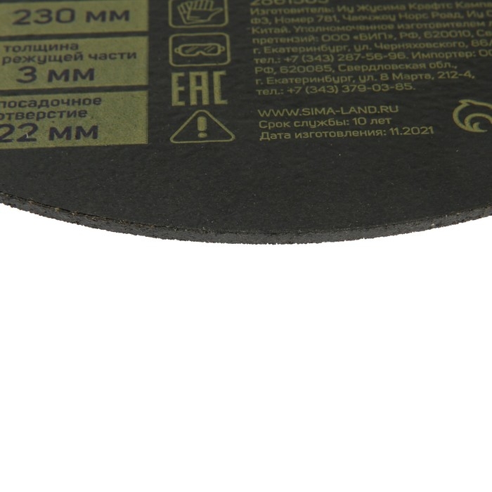 Круг отрезной по металлу ТУНДРА, армированный, 230 х 3.0 х 22 мм