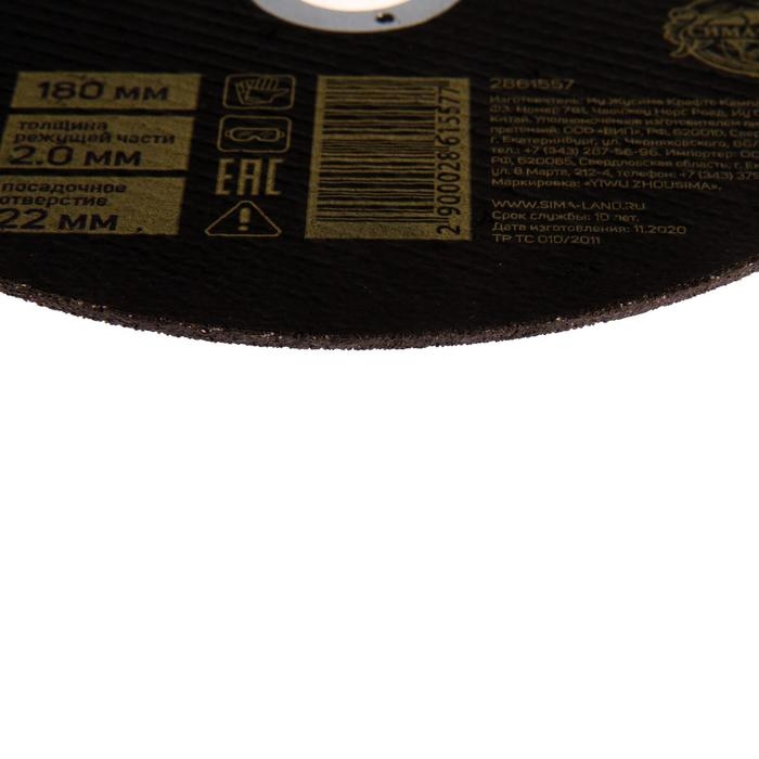 Круг отрезной по металлу ТУНДРА, армированный, 180 х 2.0 х 22 мм
