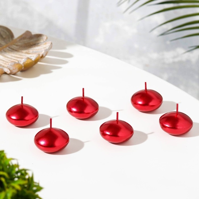 Набор свечей "Овал", 6 штук, красный металлик, 4×2см