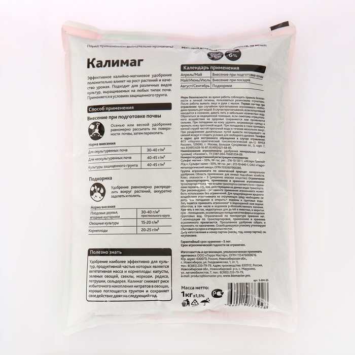 Удобрение минеральное БиоМастер Калимаг, гум., 1 кг