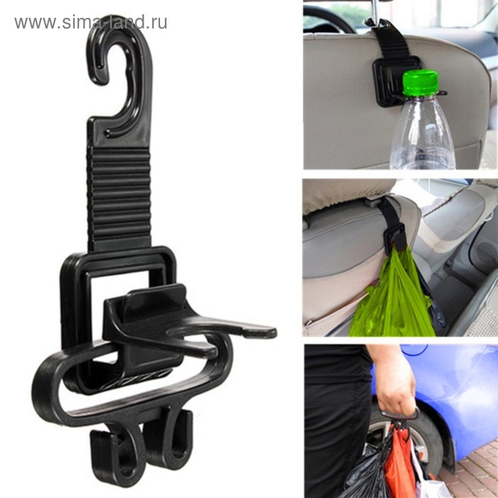 Вешалка-крючок на подголовник, два крючка, пластик, чёрный
