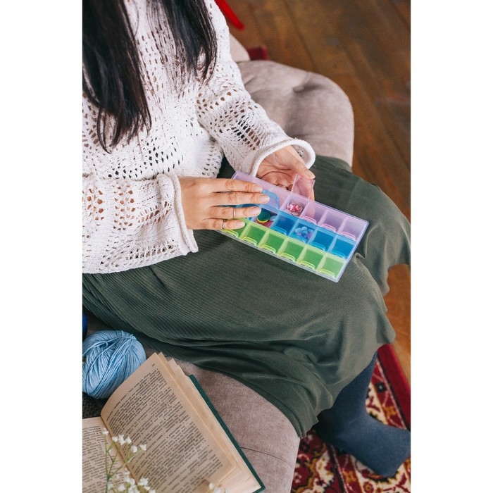 Органайзер для рукоделия, 21 отделение, 21,5 × 10,5 × 2 см, цвет МИКС