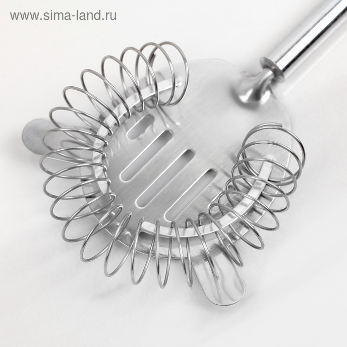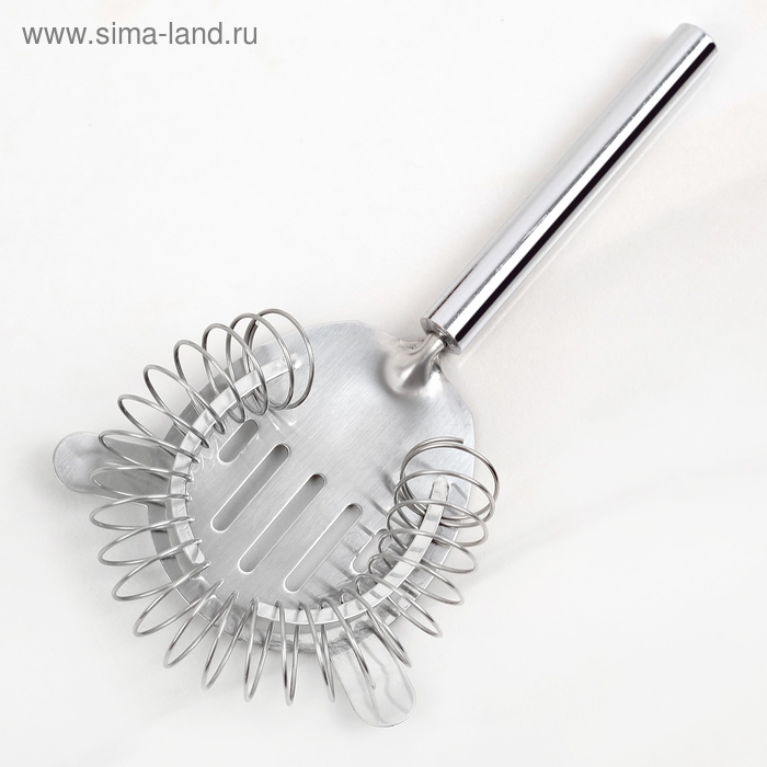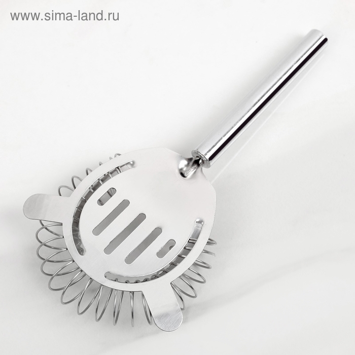 Основное отличие стрейнера от обычного ситечка — скрученная в пружину проволока. Благодаря ей крупные кусочки фруктов остаются в стрейнере, а мякоть и мелкие частички льда попадают в коктейль.
