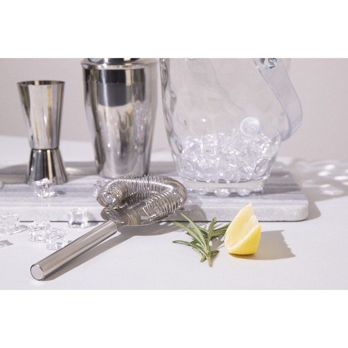 Стрейнер — профессиональный инструмент, который есть в любом баре и без которого не обойдётся ни один бармен, будь то новичок или знаток своего дела. Прибор предназначен для отделения крупных частиц льда, семечек или фруктов при переливании коктейля из шейкера в бокал.