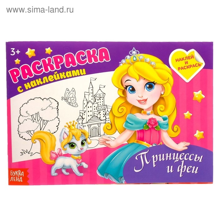 Раскраска с наклейками «Принцессы», 16 стр.