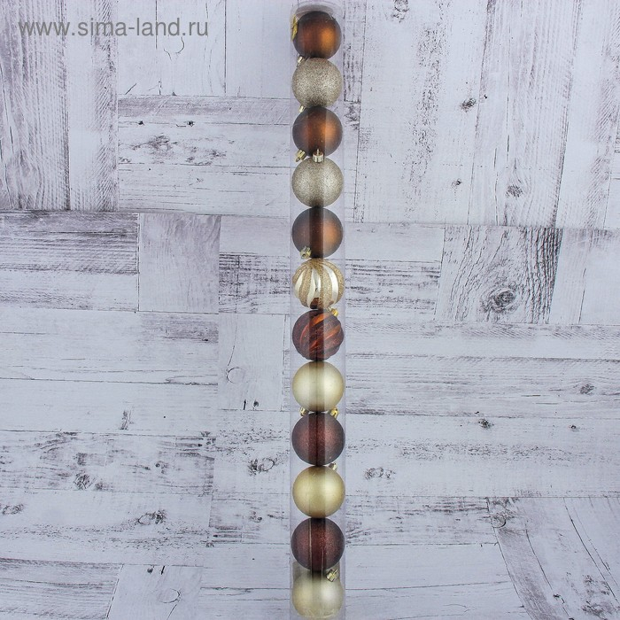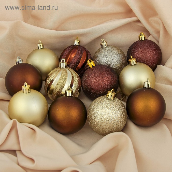 Набор шаров пластик d-6 см, 12 шт "Улыбка" коричневый и золото