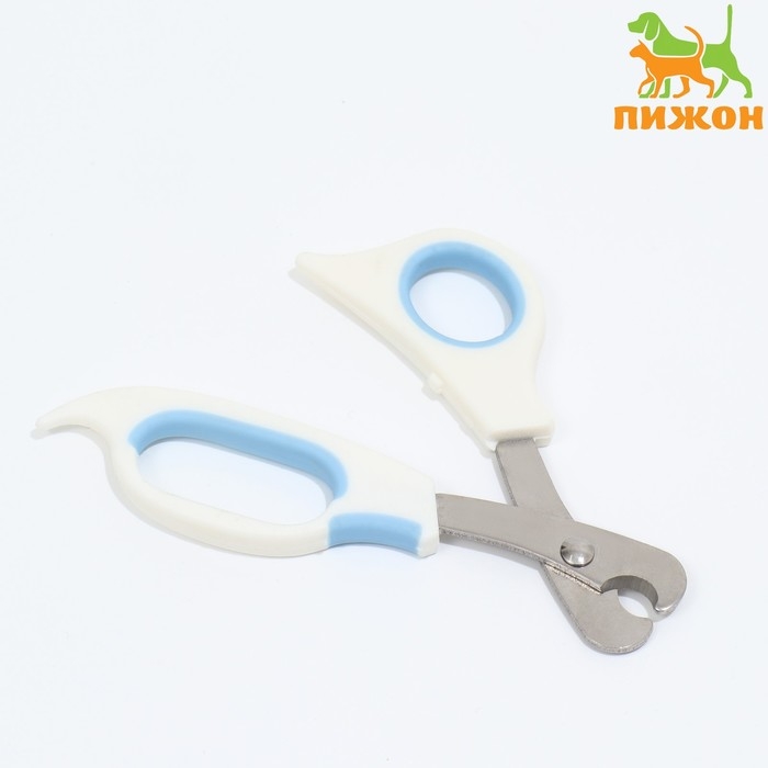 Ножницы-когтерезы "Пижон" Premium изогнутые, с упором для пальца, бело-голубые
