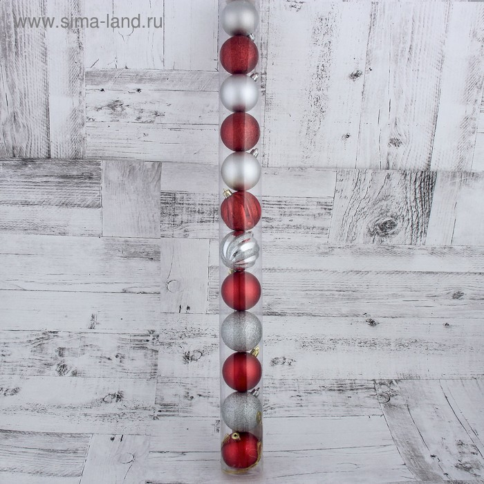 Набор шаров пластик d-6 см, 12 шт "Улыбка" серебро красный