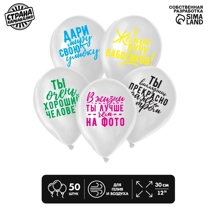 Шар латексный 12" «Хвалебные», 50 шт., МИКС