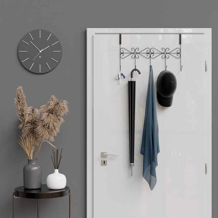 Вешалка на дверь на 5 крючков Доляна «Вензель», 38×22,5×10 см, цвет чёрный
