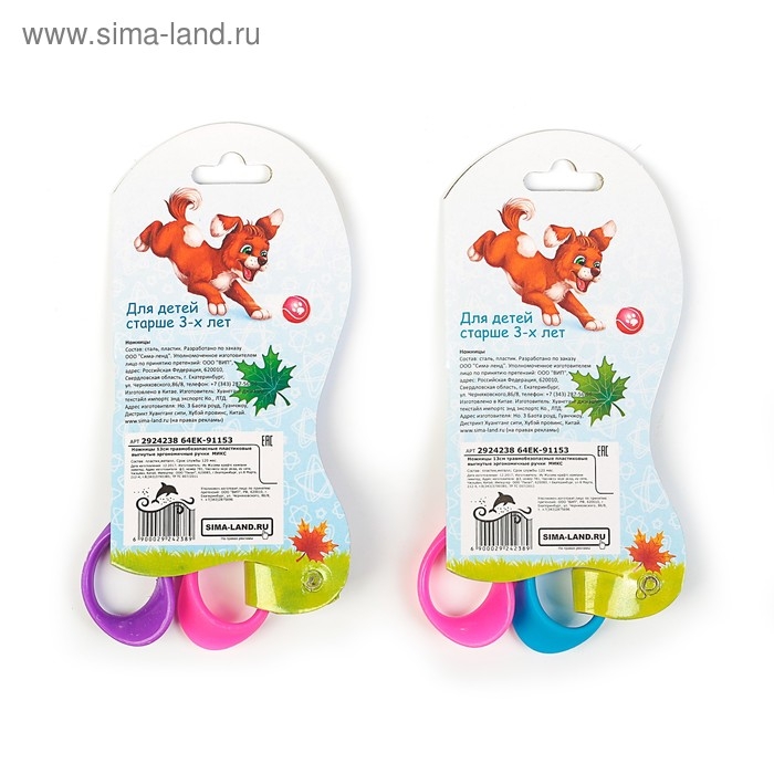 Ножницы канцелярские 13.5 см, пластиковые ручки, закругленные концы, блистер, корпус МИКС