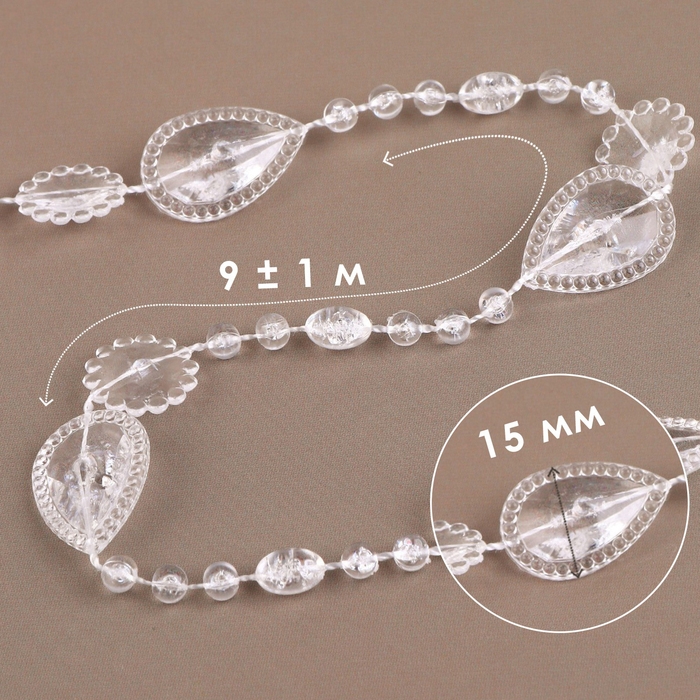 Бусы на нитях, 15 мм, 9 ± 1 м, цвет прозрачный