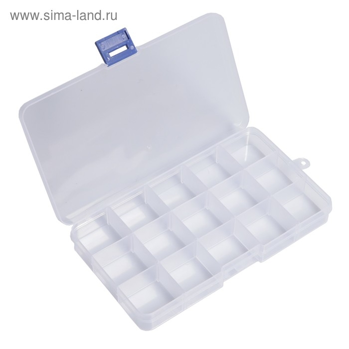 Удобный прозрачный контейнер поможет систематизировать материалы для рукоделия и сэкономит пространство. В пластиковой коробке 15 ячеек, перегородки вынимаются. В каждой из них можно хранить определенный вид декоративных элементов - бисер, пуговки, пайетки, стразы, мелкие шайбы, винты, гайки и т.д. Материалы не будут смешиваться, теряться и рассыпаться, а контейнер поддержит порядок на рабочем месте.