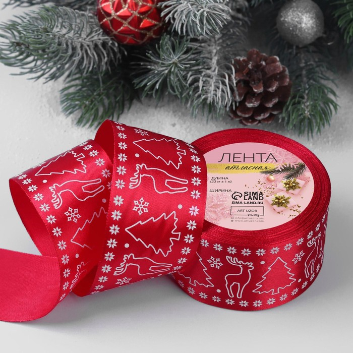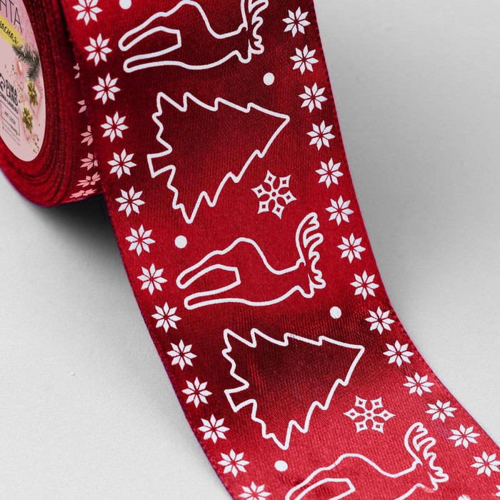 Лента атласная «Олени», 50 мм, 23 ± 1 м, цвет красный №33