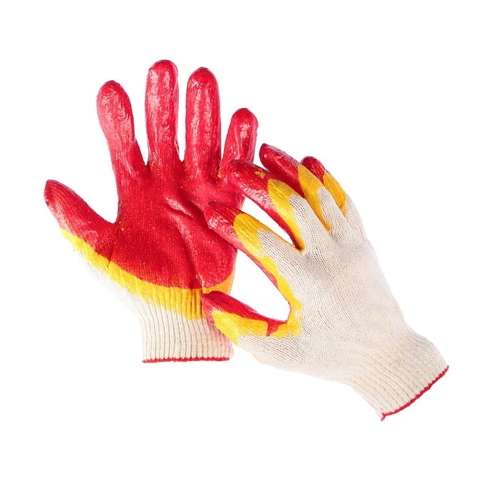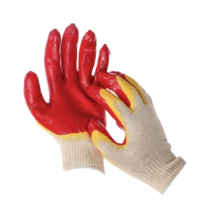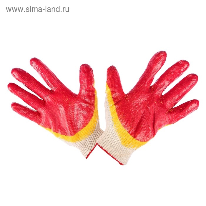 Перчатки садовые, хб, вязка 13 класс, размер 9, латексный облив, красные