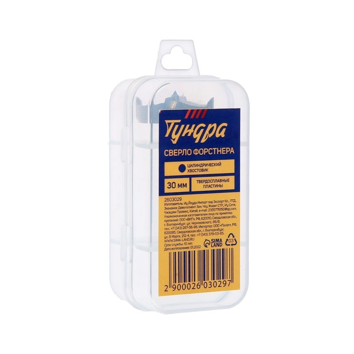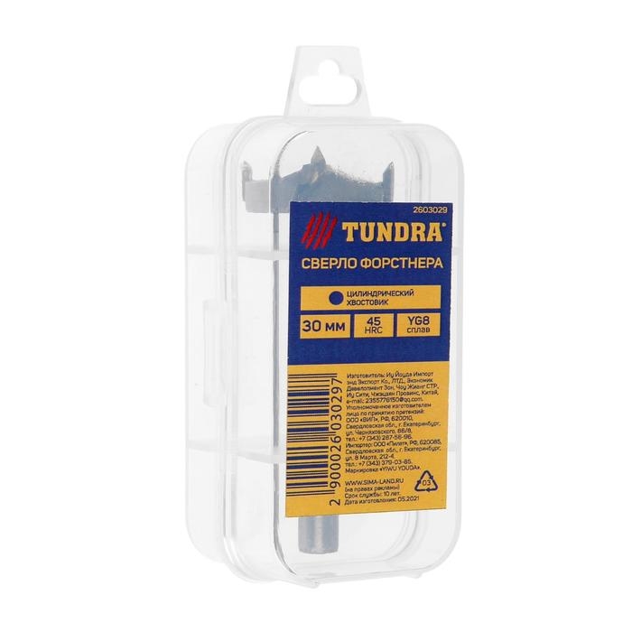 Сверло Форстнера ТУНДРА, твердосплавные пластины, цилиндрический хвостовик, 30 мм