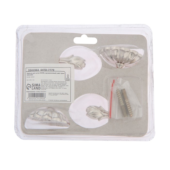 Крючок для штор "ТУНДРА" KS006, однорожковый, цвет хром