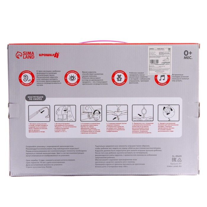 Мобиль музыкальный на кроватку «Пряничный Домик. Птицы», заводной, Крошка Я