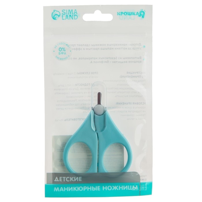 Ножницы детские безопасные, маникюрные, с чехлом, от 0 мес., цвет голубой