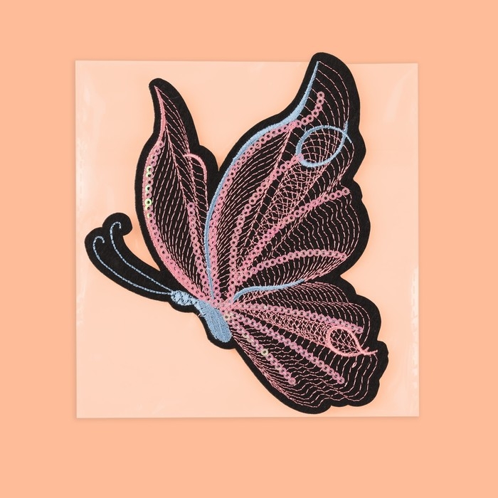 Термоаппликация «Бабочка», с пайетками, 15 × 12 см, цвет чёрный/розовый