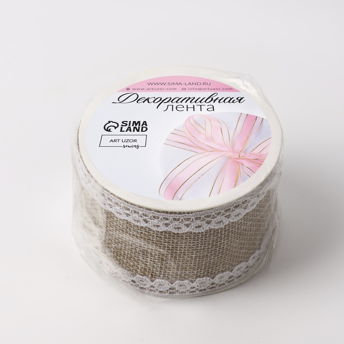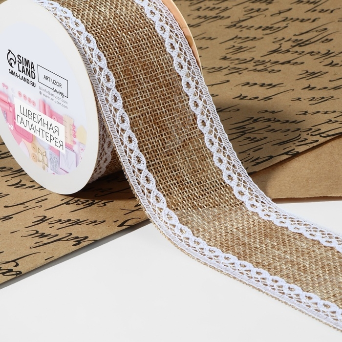 Лента из джута «Кружево», 50 мм, 4,5 ± 0,5 м, цвет бежевый