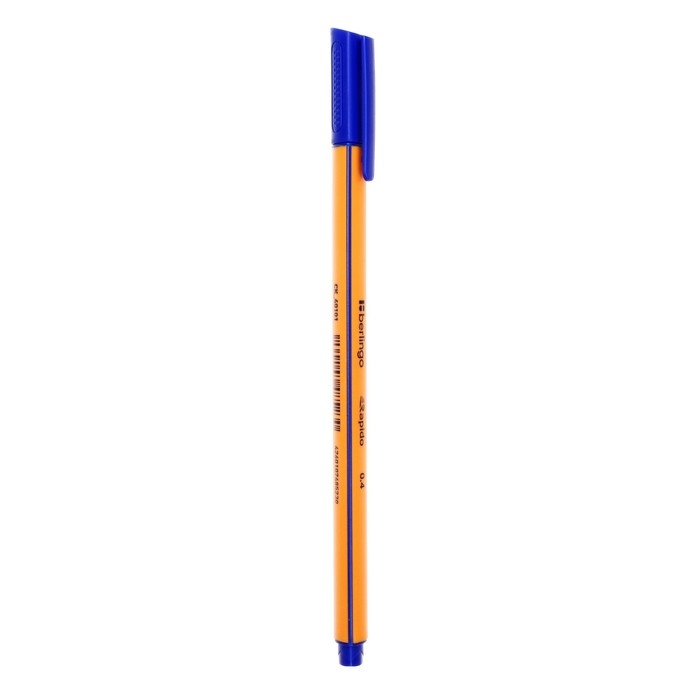 Капиллярная ручка Berlingo Rapido обеспечивает особо легкое, мягкое и точное письмо, идеально подходит для рисования и черчения. Благодаря эргономичному трёхгранному корпусу максимально комфортна в использовании. Металлическое обжатие наконечника дает возможность работать с линейками и трафаретами. Высокое качество износостойкого пишущего наконечника и большой запас чернил значительно увеличивают срок службы ручки до 48 месяцев. Также, ручка долгое время не утрачивает пишущих свойств без колпачка. Чернила на водной основе. Цвет колпачка соответствует цвету чернил. Диаметр пишущего узла составляет 0,4 мм, что гарантирет мягкое и быстрое письмо. Толщина линии письма составляет 0,4 мм, а длина линии письма составляет 1000 метров. Цвет чернил: синий, Толщина линии письма: 0,4 мм, Длина линии письма: 1000 м, Цвет корпуса: оранжевый.