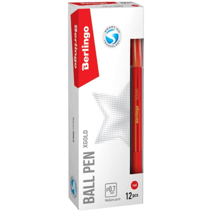 Ручка шариковая Berlingo xGold, стержень красный, узел-игла 0,7 мм