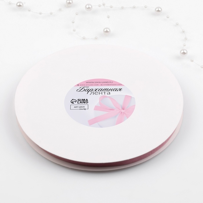 Лента бархатная, 10 мм, 18 ± 1 м, цвет розовый №08
