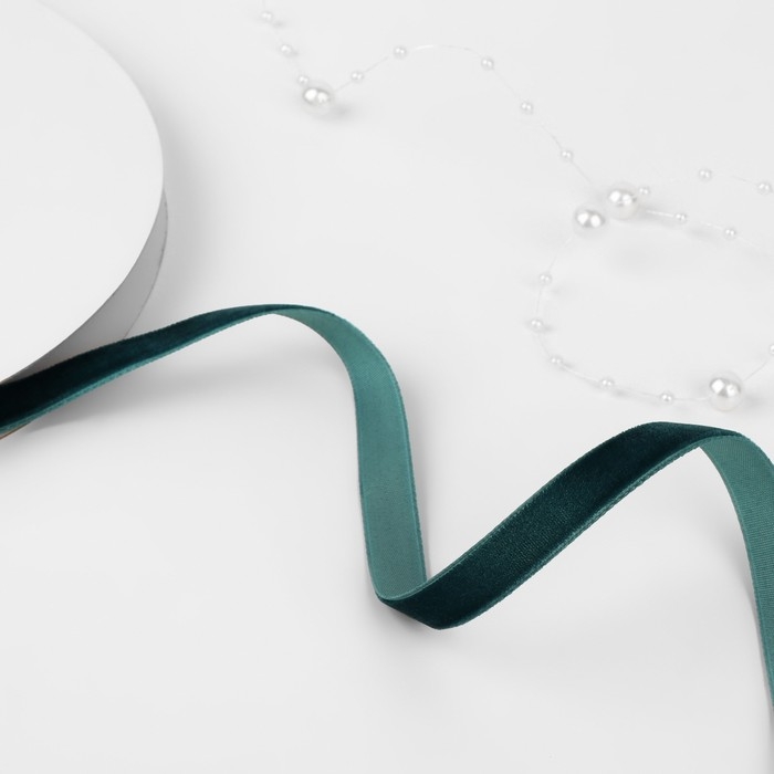 Лента бархатная, 10 мм, 18 ± 1 м, цвет изумрудный №34
