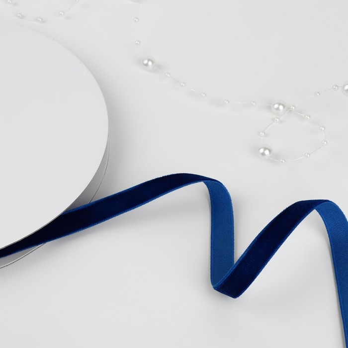 Лента бархатная, 10 мм, 18 ± 1 м, цвет синий №47