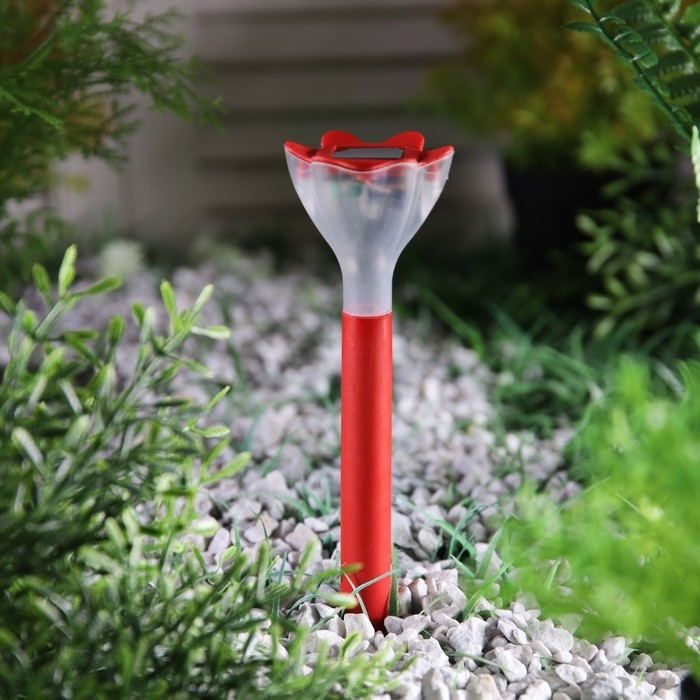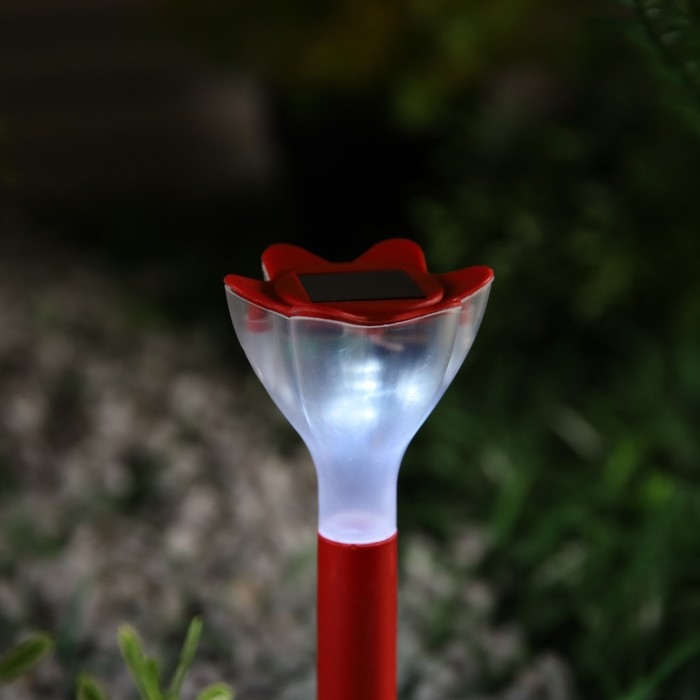 Садовый светильник на солнечной батарее «Цветок красный», 6 × 29 × 6 см, 1 LED, свечение белое