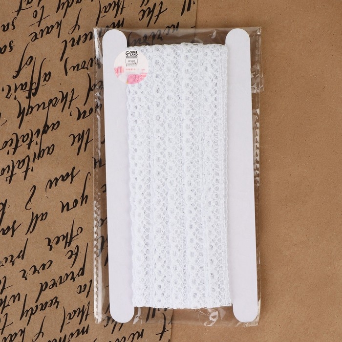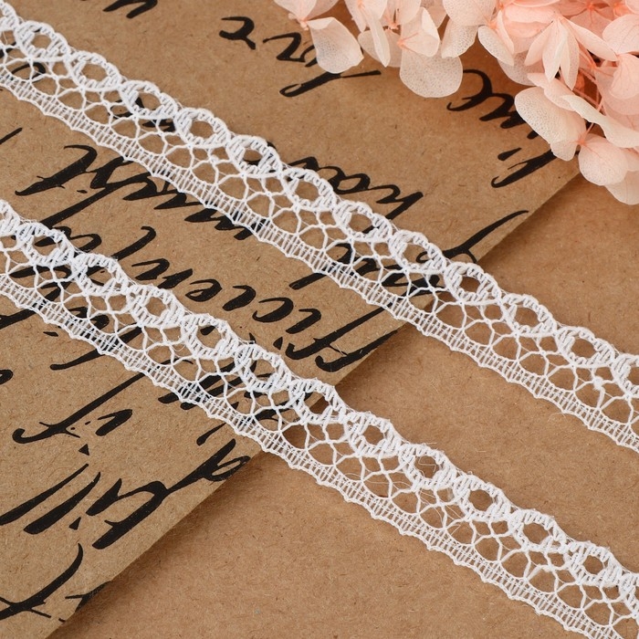 Кружево капроновое, 10 мм × 10 ± 1 м, цвет белый