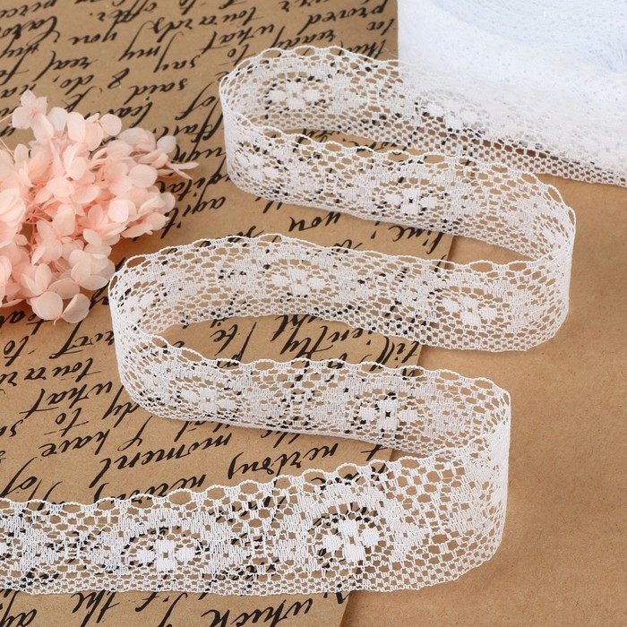 Кружево гипюровое, 15 мм × 14 ± 1 м, цвет белый