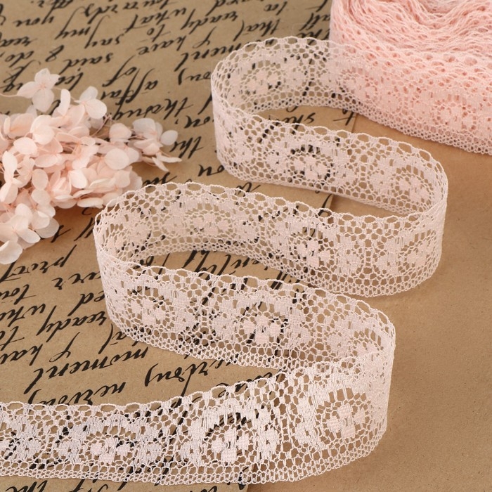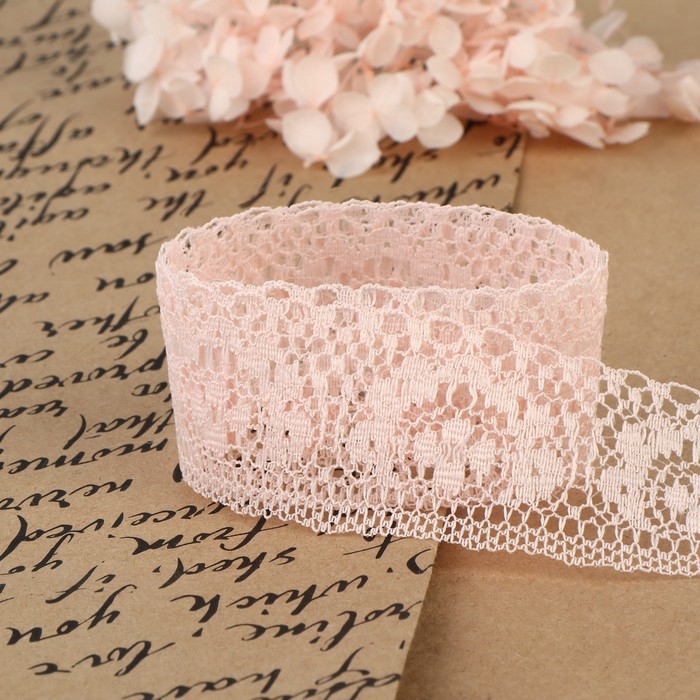 Кружево капроновое, 35 мм × 10 ± 1 м, цвет персиковый
