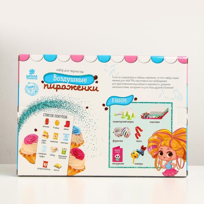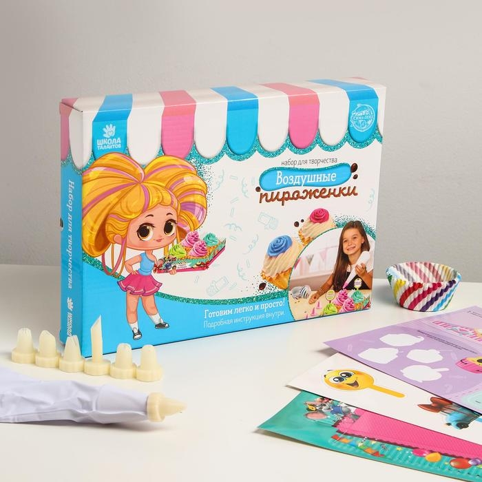 В набор входят кондитерские принадлежности и простые рецепты популярных сладостей с иллюстрациями. С их помощью кроха приготовит вкусные лакомства вместе с родителями.