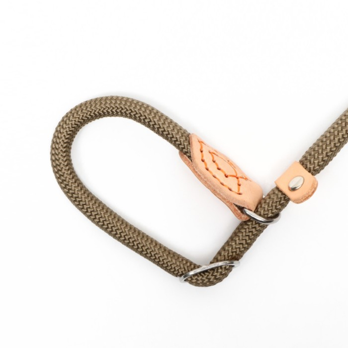 Поводок-удавка 150 х 1 см, полиэстер и натуральная кожа, бежевый
