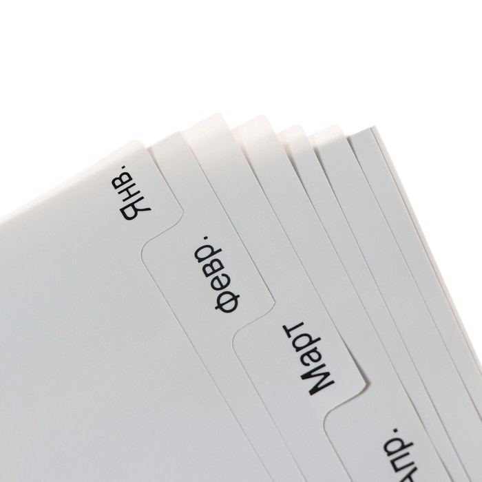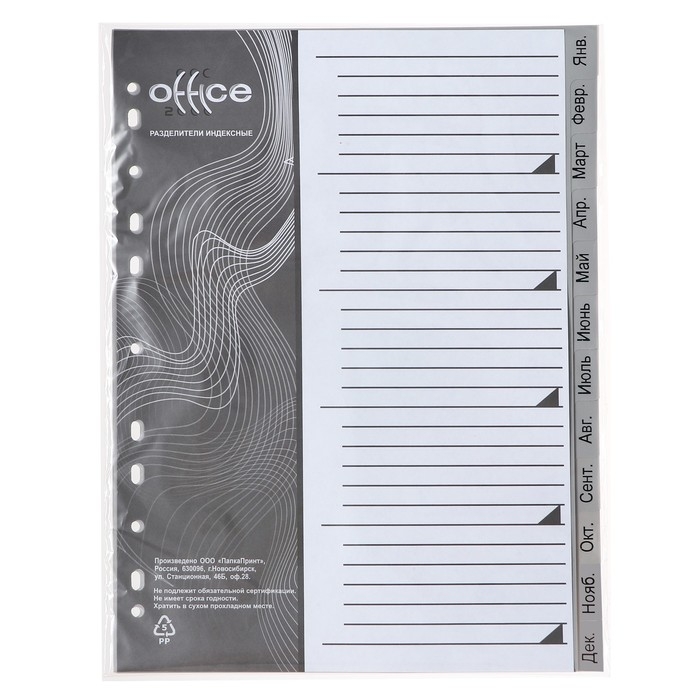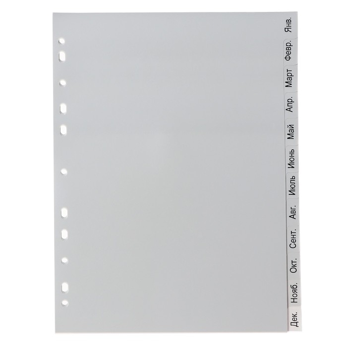 Набор разделителей листов А4 Office-2000, по месяцам ЯНВ-ДЕК, 12 листов, серые, пластик 120 мкм