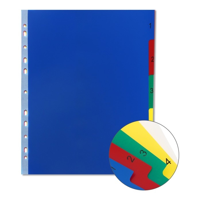 Разделители помогут Вам комфортно сортировать, архивировать и систематизировать любые документы внутри папок разного вида. Они выполнены из прочного пластика и имеют универсальную перфорацию для подшивки в папки.