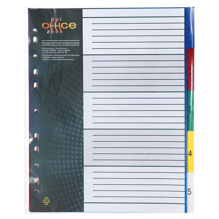 Набор разделителей листов А4+ Office-2000, цифровой 1-5, цветные, пластик 140 мкм