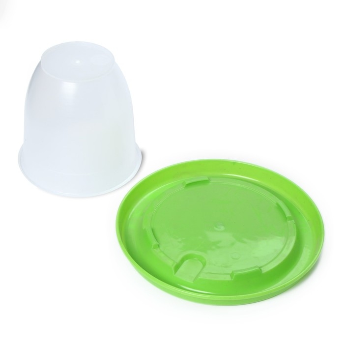 Вакуумная поилка пригодится для поения птицы. Состоит из бачка-конуса и крышки-дна.
