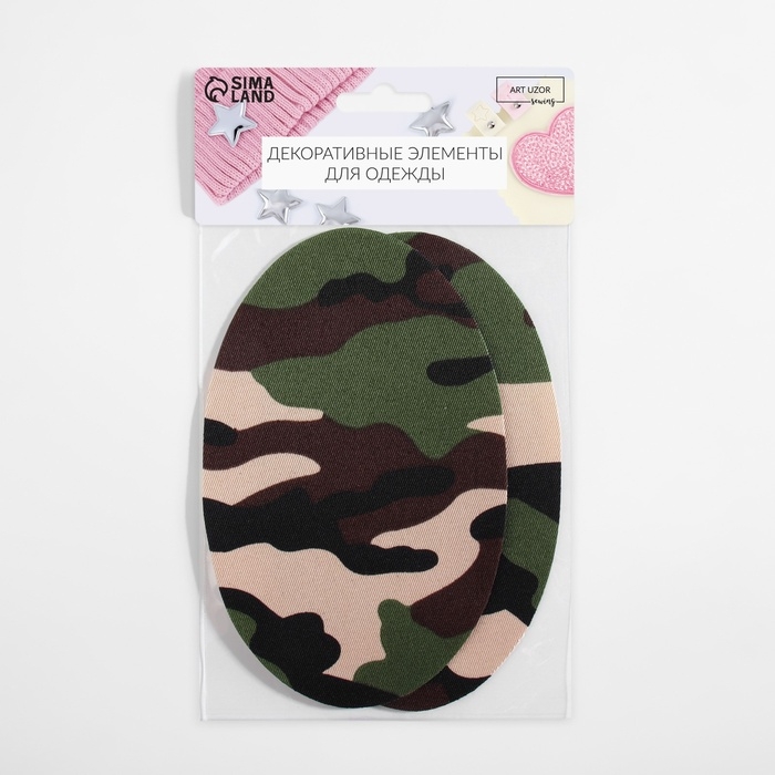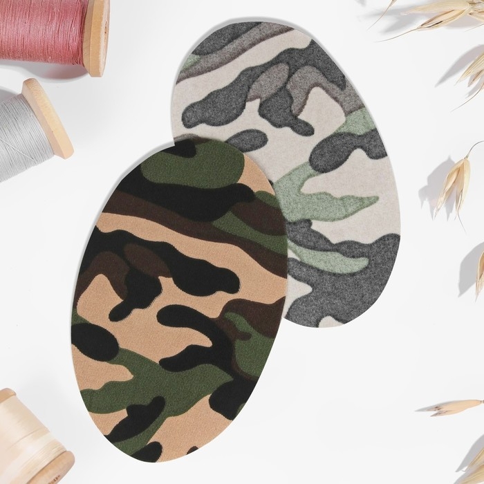 Заплатки для одежды, 15,5 × 9,5 см, термоклеевые, пара, цвет камуфляж