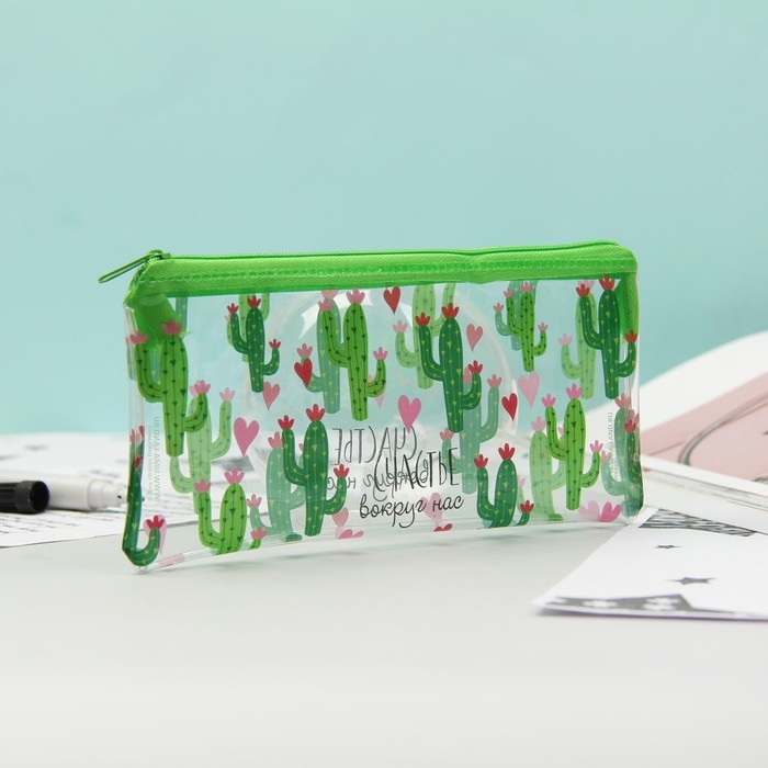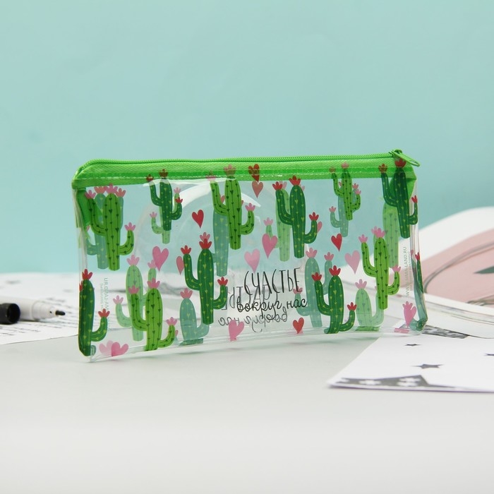 Пенал мягкий 1 отделение, 95 х 205 мм, плоский, ПВХ, Calligrata "Счастье вокруг нас"