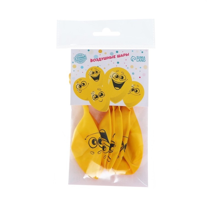 Воздушный шар латексный 12" «Улыбки, мордочки», 5 шт., МИКС