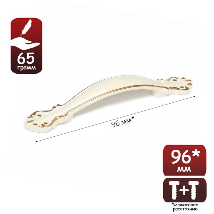 Интересный дизайн ручки сочетается с различными типами мебельного гарнитура. Фурнитура имеет привлекательный внешний вид и компактный размер. Белый оттенок с золотистыми вставками идеально подходит к мебельным фасадам в различной цветовой гамме.