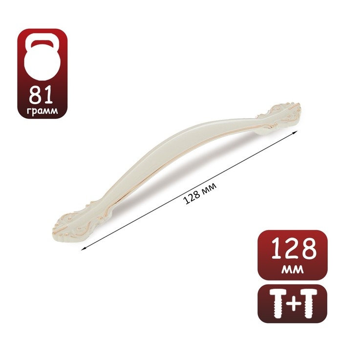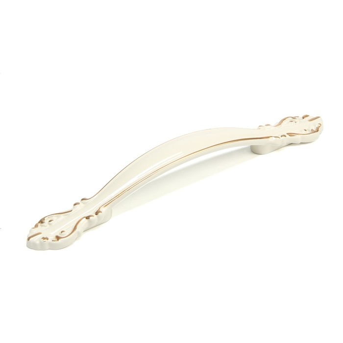 Интересный дизайн ручки сочетается с различными типами мебельного гарнитура. Фурнитура имеет привлекательный внешний вид и компактный размер. Белый оттенок с золотистыми вставками идеально подходит к мебельным фасадам в различной цветовой гамме.