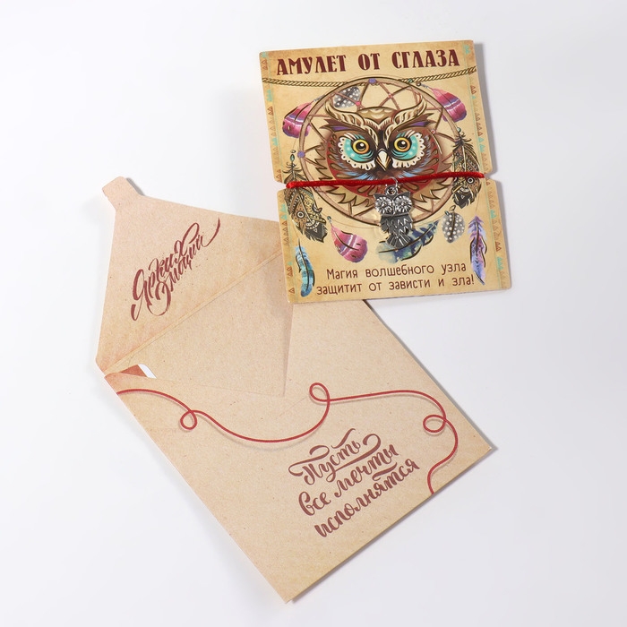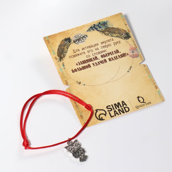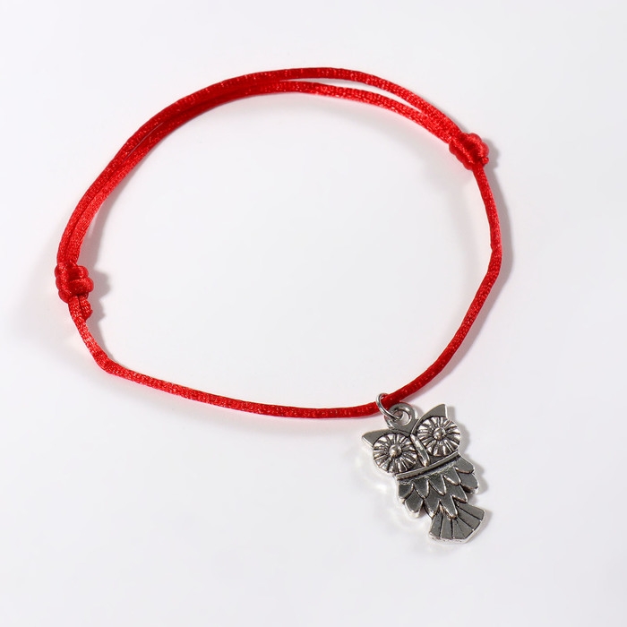 Браслет-оберег «Красная нить» талисман защиты, амулет сова, цвет серебро, d=8 см